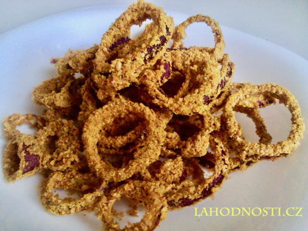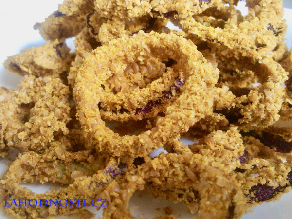 TIP 1: Použijte zlaté lněné semínko, má jemnější chuť než lněné semínko hnědé. A navíc cibulové kroužky budou vypadat jako osmažené. K tomu mě napadá TIP 2.